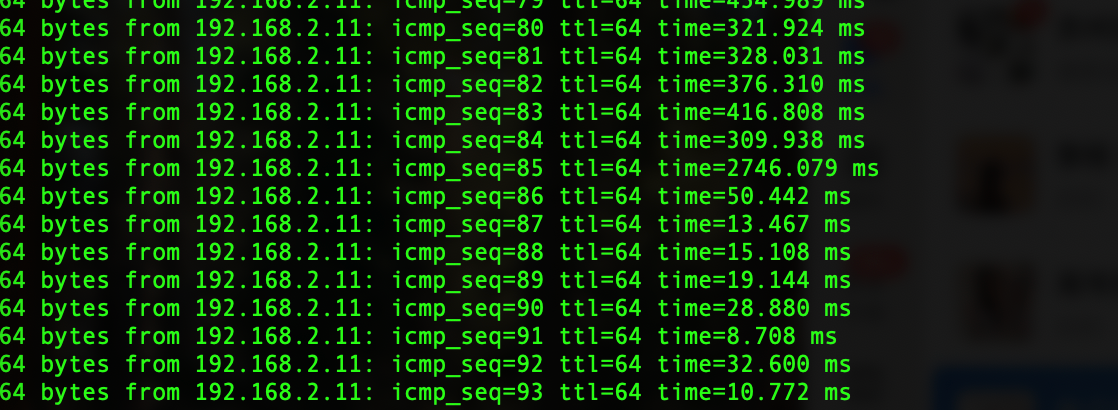 如果只是简单的互通到这里为止,你的iphone和linux已经可以实现互相访问了,直接ping网页端显示的ip地址即可,一般刚连上会延迟比较高,打洞成功后延迟基本在个位数